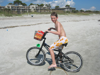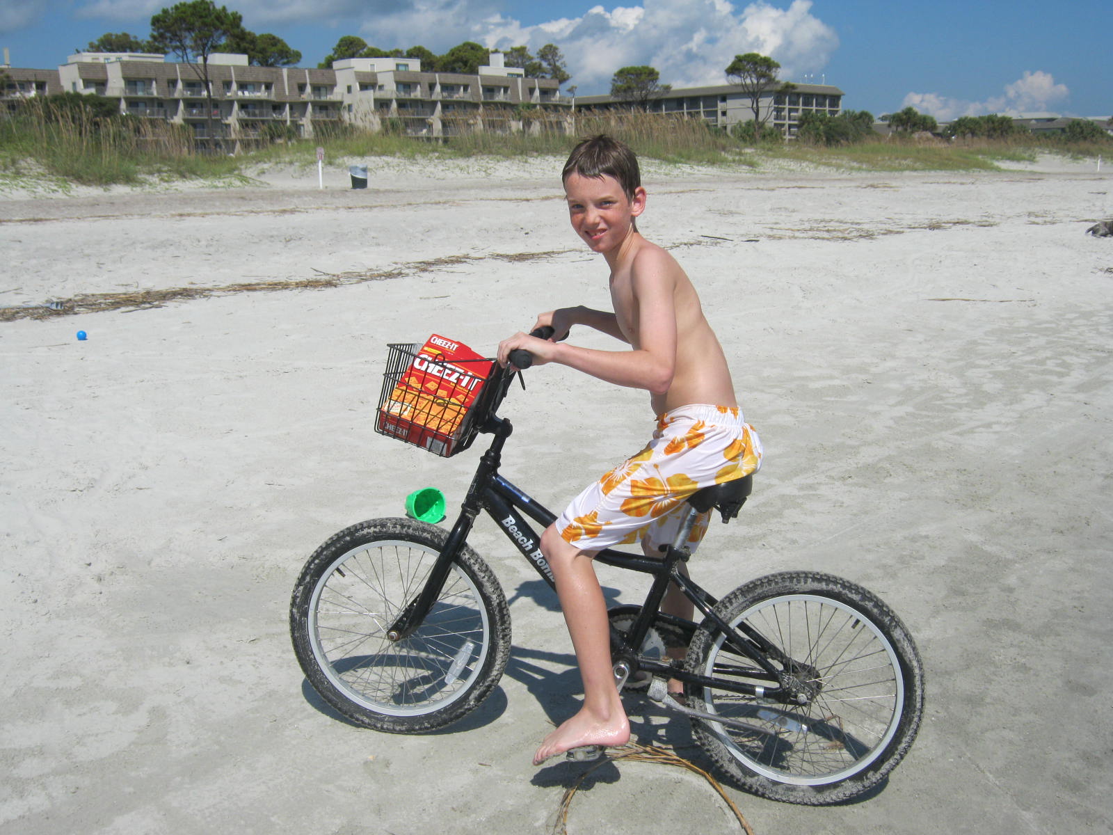 We need a car. Plus, Sharky and the Gnome are typically in tow. Also, I can promise you this, as much as he loves me, Tall Child does not want me straddling him from the back, “log fluming it” with my mouth right at his ear from here to Hilton Head. And there is NO way he’d let me drive. He can barely shotgun it in Big Red without passing a non-existent kidney stone. We’d never make it on two wheels.