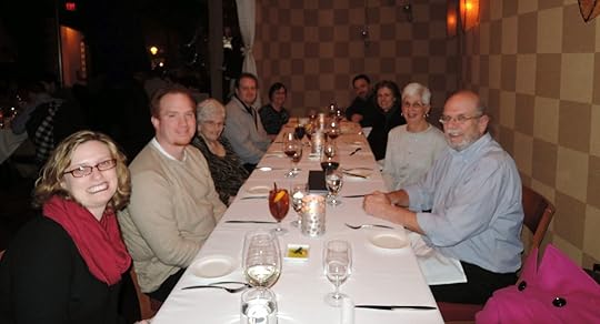 Yesterday we celebrated my mother’s 90thbirthday. We were all going to be in Bethlehem, PA for my daughter’s wedding on Sunday, and so we arrived a couple of days early to be together with Mom for her birthday. Here’s a picture of us at The Edge restaurant last night, where they treated us well and the food was very good. (I had the New Zealand lamb chops.)