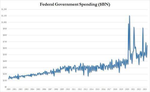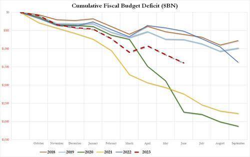 There was a shocking number in today’s latest monthly US Budget Deficit report. No, it wasn’t that US government outlays unexpectedly soared 15% to $646 billion in June, up almost $100 billion from a year ago…