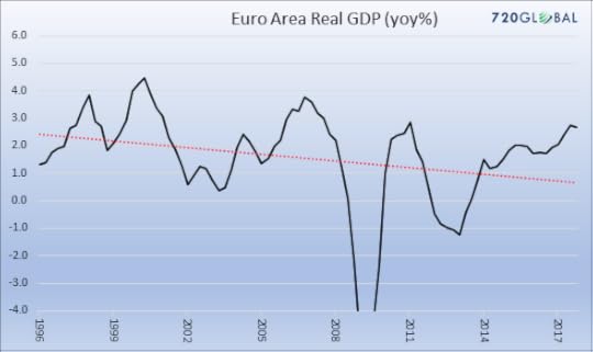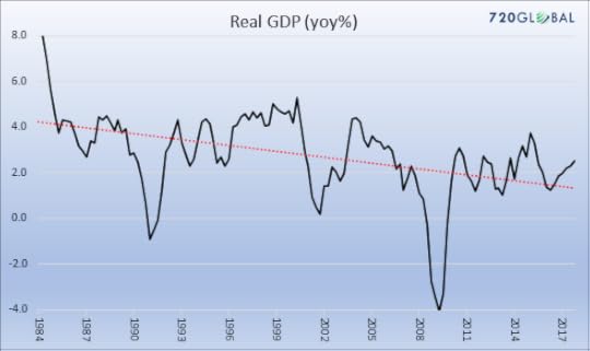 In summary, each of the main economic zones are growing at lower rates than they did 10-20 years ago. While they are each trending slightly higher after bouncing off recent troughs in early 2016, all are well within a range established since the Global Financial Crisis (GFC).