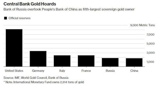 Russia has overtaken China as the fifth-biggest sovereign holder of gold, allowing it to diversify its foreign currency holdings amid a deepening rift with the US, Bloomberg News’ Eddie van der Walt reported overnight.