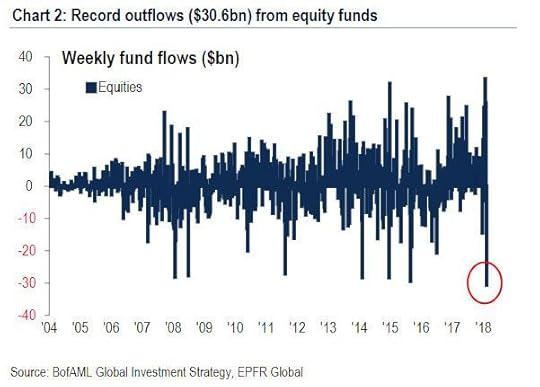 The renewed slide followed Thursday’s drop in the S&P 500, which pushed the index to a 10 per cent decline from its January high – officially, a correction – stirred renewed concerns over the future of the long bull market that followed the 2008 financial crisis, and whether the selloff that was catalyzed by systematic quant funds would spill over to retail investors. And, as we highlighted overnight, that’s precisely what happened following the single biggest weekly outflow from equity funds on record.