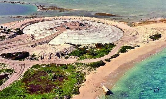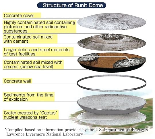 This thirty-foot-deep crater is called the Runit Dome, on Enewetak Atoll, also called “Cactus Dome” or locally “The Tomb.”
