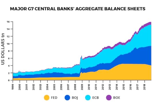 Since late 2008, G7 central banks, comprising the Fed, the Bank of Japan, the European Central Bank and the Bank of England, have committed to massive balance sheet expansion (through the purchase of mortgage and government debt). Their balance sheets continued to rise in aggregate during 2017 even though the Fed itself stopped expanding its own balance sheet in November 2014. Aggregate assets of G7 central banks increased by 17.2% last year to $15.2tn at the end of 2017, up from US$4.3tn at the beginning of 2008 (see following chart).