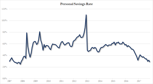 Meanwhile, even more troubling was the ongoing collapse in the US personal savings rate, which last month tumbled to the lowest level since the financial crisis as US consumers drained what little was left of their savings to splurge on holiday purchases.