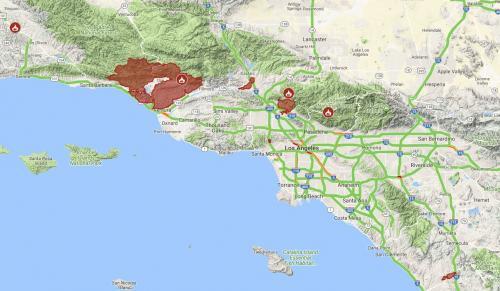 At least five of the six wildfires that ignited two weeks ago were still active as of Sunday, according to CNN. But the Thomas Fire is by far the biggest, as the map below illustrates.