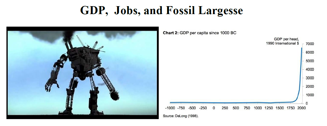 We normally assume that anything that creates jobs is a good thing, but is it, really? Is our current prosperity related to having “jobs”? Isn’t it, rather, the result of the large number of “energy slaves” working for us in the form of fossil fuels? Today, everyone of us has probably more slaves in terms of available energy output than even the richest in the ancient world could have. But, in the ancient world, the rich Roman patricians knew the source of their wealth and practiced “otium” (a term untranslatable in English) intended as the search of pleasure and knowledge free from the needs of everyday survival – with their human slaves taking care of that. In our times, instead, we tend to neglect, or even actively deny, the role of our fossil slaves. We state, and maybe even believe, that our antics (“jobs”) are what makes us live and we engage with gusto in the equivalent of digging holes in the ground and filling them up again as a good way to make us rich by increasing the numerical value of that curious deity we call “dʒiːdiːˈpiː” (or “GDP”). Maybe it is because, deep down, we know that, sooner or later, our fossil slaves are going to evaporate into thin air and leave us.