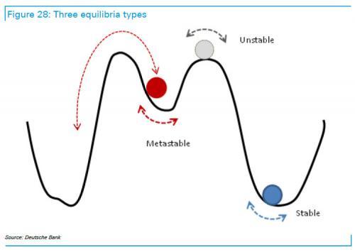 Anecdote: “The most common example is a ball sitting atop a hill,” she said, polished accent, hint of condescension. “Locally stable, but one nudge and it’s all over.”