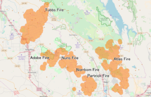 A map of the 2017 Northern California wildfires from October 5 to October 12. (Wikipedia)