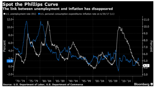 Their study is timely. Fed officials have been surprised by a deceleration in U.S. inflation over the past several months despite a continued decline in unemployment, the opposite of what the Phillips curve relationship would predict.