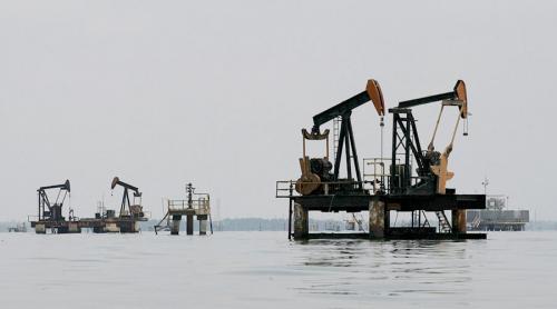 Oil pumps in Lake Maracaibo, Lagunillas, in the state of Zulia, Venezuela