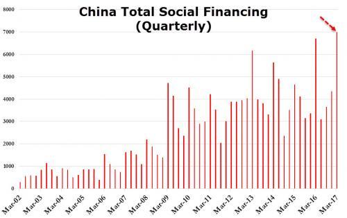 “China’s economy started off well this year, which shows that the reforms are working,” the ministry said in a statement on its website. Actually, it only shows that China had injected a record amount of loans into the economy at the start of the year, and nothing else. And now that the credit impulse is fading, the hangover has arrived.