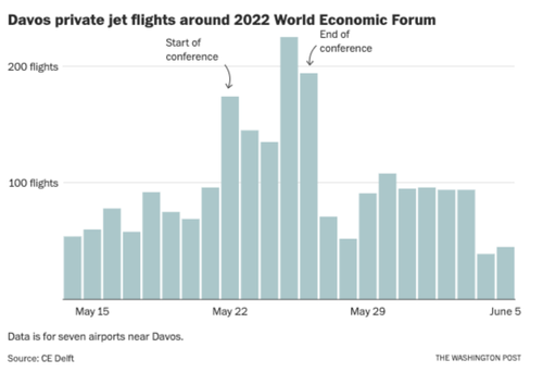 WEF hopes to tackle what they believe is a climate crisis plaguing the world despite most attendees arriving by private jets, which are the most polluting mode of transport per passenger