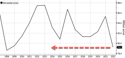 The agency estimated farmers harvested 79.2 million acres, a decline of 1.6 million acres versus the previous estimate — the smallest acres harvest since 2008.