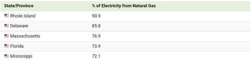 Here are some states that have the largest shares of natural gas-sourced electricity.