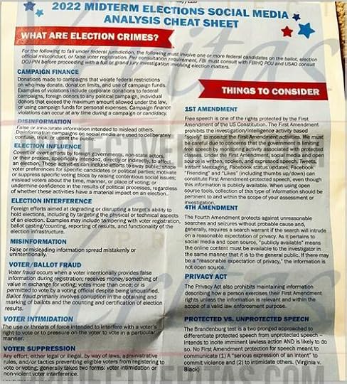 An FBI “2022 Midterm Elections Social Media Analysis Cheat Sheet” leaked to Project Veritas by an agency whistleblower lists misinformation and disinformation as ‘election crimes.’