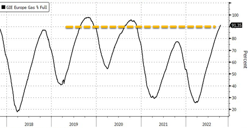 For Europe, there is good news (for now). Temperatures are expected to be warmer than normal through at least mid-November. Also, NatGas storage in the EU is 91% full despite reduced NatGas flows.