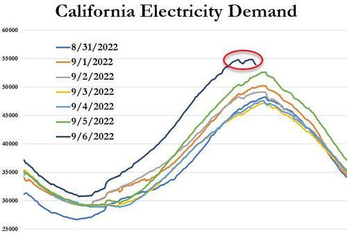 Update (2030ET): As was expected earlier, California power usage surged to a record high this afternoon raising the emergency status of the state’s electrical system to the highest possible level amid a blistering heat wave, which means rolling blackouts are imminent.