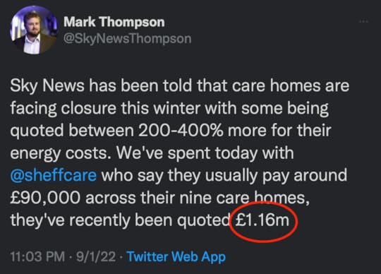 Eighteen months ago, the UK average annual combined gas and electricity bill was £1,287. Later this week, we expect to learn that it will rise to £3,582 in October and to £4,266 in January 2023. Not, in reality, that anybody is going to pay that amount. All but those at the very top of the income ladder will instead cut back on energy use, with those at the bottom forced to self-disconnect. The problem is far worse for business users, who are not “protected” by the price “cap” imposed by the regulator. Energy is often the third largest cost – after wages and taxes – to businesses which have already been struggling with higher input and debt-servicing costs. What this is pointing to is a major affordability crisis this winter, with growing concerns for public health and the likelihood of a recessionary wave of business insolvencies.