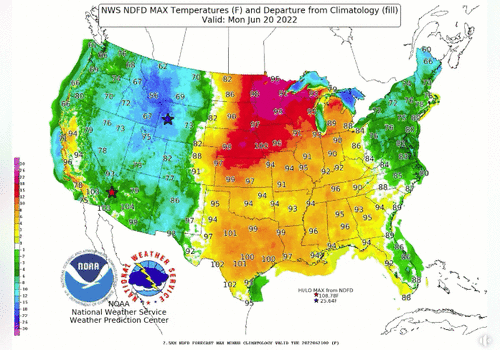 Summer begins Tuesday, and large swaths of the Central and southern parts of the country could see above-average max temperatures through the end of the month.