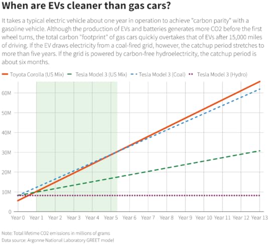 Other studies show carbon parity can occur much earlier, depending on the underlying energy source.