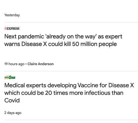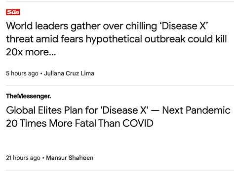 Almost every major news outlet in the world has run black propaganda pieces about disease X. Why do I write black propaganda – because the “experts” aren’t actually named, the peer-reviewed papers supporting the thesis of “a deadly pathogen causing 20 times more deaths than COVID-19” or “killing 20 times more people than COVID-19” or “killing 50 million people” are non-existent. Yet these narratives are all headline news in main stream media.