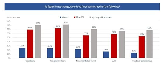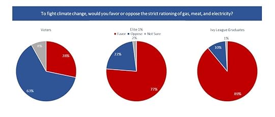77 per cent of elitists who were asked, “To fight climate change, would you favor or oppose the strict rationing of gas, meat and electricity?” said they would favor such a policy.