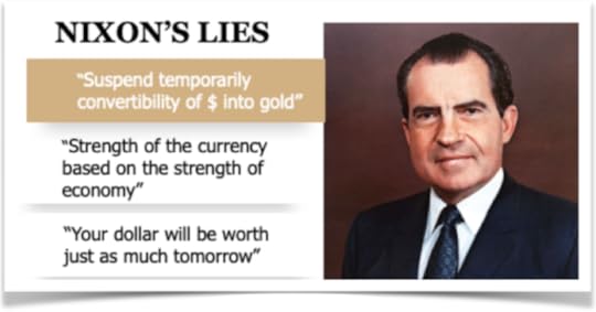 Let’s just look at Nixon’s ignorant and irresponsible statements of August 15, 1971 when he took away the gold backing of the dollar and thus all currencies.