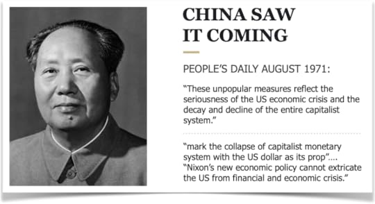 So in 1971 after Nixon closed the gold window, China in its official news media the People’s Daily made the statements below: