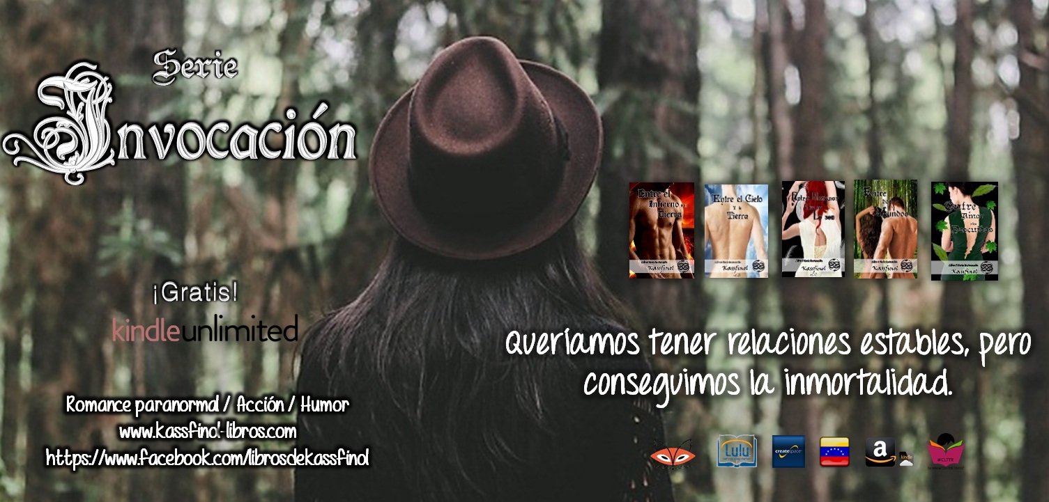Gratis Kindleunlimited Sus reseñas pueden leerlas en: www.kassfinol-libros.com/resenas/¿No tienes Kindle? Aquí te digo cómo leer los libros en cualquier dispositivo: http://www.kassfinol-libros.com/como-leer-libros-de-amazon-sin-tener-kindle/Oferta 5 libros en 1: http://mybook.to/serieinvocacionSerie invocación por separado:1.- Entre el infierno y la tierra myBook.to/entreinfiernoytierra 2.- Entre el cielo y la tierra myBook.to/entrecieloytierra 3.- Entre humanos que no lo son myBook.to/entrehumanosnoloson 4.- Entre dos mundos myBook.to/entredosmundos 5.- Entre el amor y los descuidos myBook.to/entreamorydescuidosBilogía princesas Inmortales (spin-off):1.- Aniquilando lo que ya está muertohttp://myBook.to/princesasimortales12.- Caminando antes de sucumbir: http://myBook.to/bilogiaprincesasinmortales2