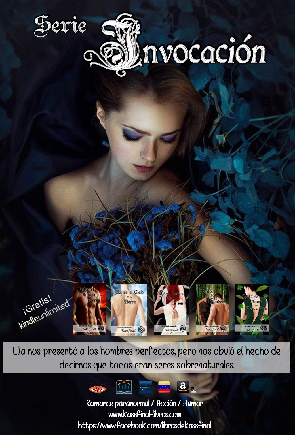 Cuando nos enamoramos fuimos invadidas por situaciones peligrosas, pero muy emocionantes. (Romance-Acción- Humor)Sus reseñas pueden leerlas en: www.kassfinol-libros.com/resenas/Serie invocación:1.- Entre el infierno y la tierra myBook.to/entreinfiernoytierra 2.- Entre el cielo y la tierra myBook.to/entrecieloytierra 3.- Entre humanos que no lo son myBook.to/entrehumanosnoloson 4.- Entre dos mundos myBook.to/entredosmundos 5.- Entre el amor y los descuidos myBook.to/entreamorydescuidos Si no has leído aun ninguno, puedes adquirir el Pack con los 5 libros serie invocación a un precio especial (4$) te ahorras (7$) myBook.to/serieinvocacion