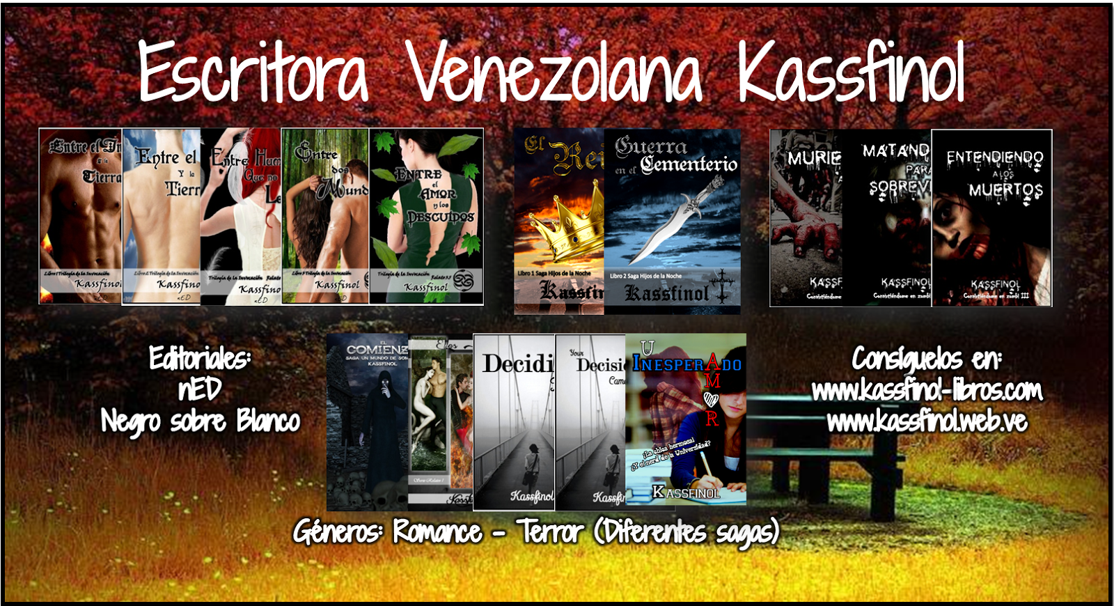 Conoce los #libros de la escritora Kassfinol http://t.co/KUMqNiDZj1 #romance #acción #humor #terror #amazon pic.twitter.com/Ekm5hR3uFB