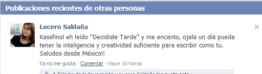 Si quieres adquirir uno de mis libros puedes hacerlo via Amazonhttp://www.amazon.com/Kassfinol/e/B00BWAKLSS/ref=ntt_athr_dp_pel_pop_1