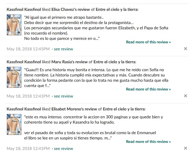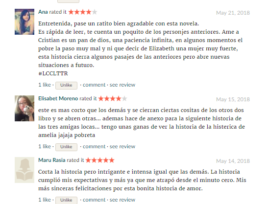 Para mi parte hacer lecturas conjuntas siempre ha sido lo más gratificante que me puede pasar como autora, porque establezco nuevas amistades y conozco excelentes lectoras.