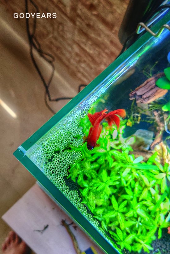 Turns out, the bubble nest is a natural process of the male betta fish. When he's in a 'daddy mood', he starts making these small clusters of bubbles as a nest. After spawning with his babe, he quickly...