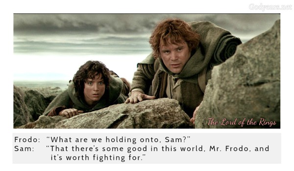 Frodo: “What are we holding onto, Sam?”Sam: “That there’s some good in this world, Mr. Frodo, and it’s worth fighting for.” - The Lord of the Rings: The Two Towers