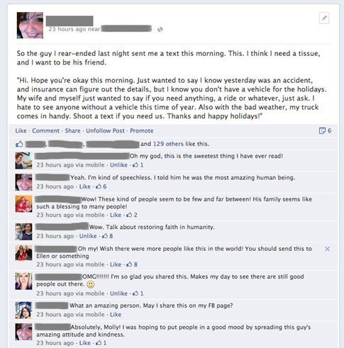 What if, instead of the constant photos of hatred and photoshopped images spewing distrust, you chose to share images of random acts of kindness? Would it really be that bad a thing?