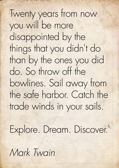 Quote Challenge Day 2 - Sail away from the safe harbor