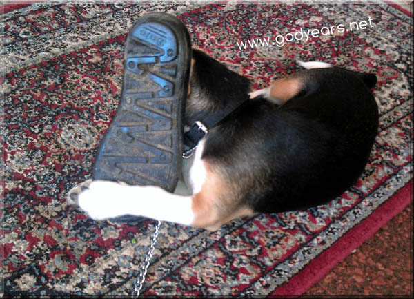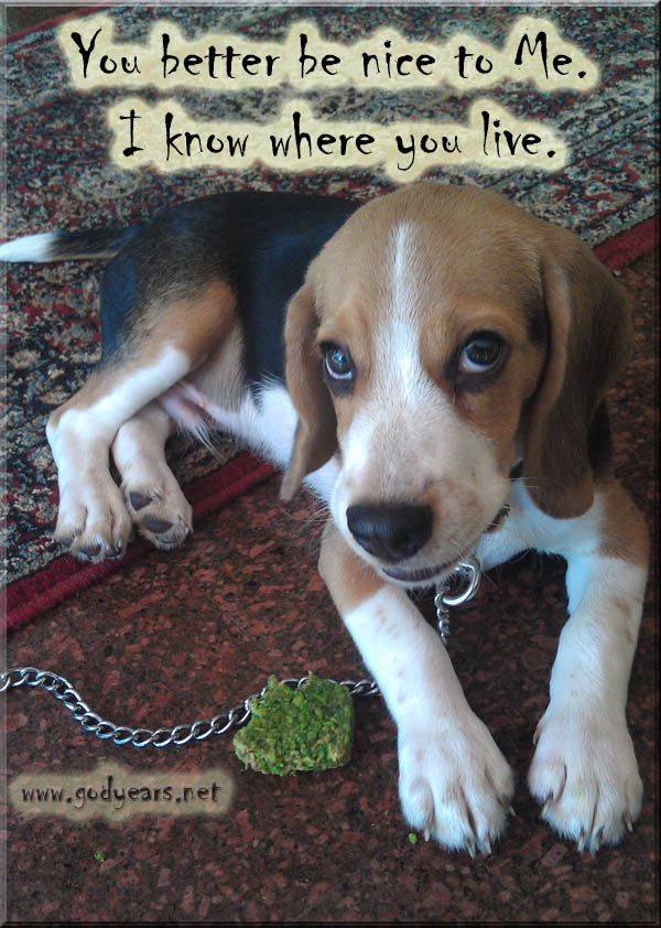 Anyway, I don't have any prizes to offer but I would love to hear your comments/captions for the above picture of this rapidly growing 4 month old pup who is now chasing my two year old doberman around the house.