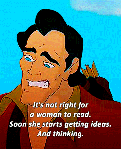 Yeah, the truly scary thing about Beauty and the Beast isn’t that Gaston exists, but that society fucking loves him. People who deride the movie by saying it’s about Stockholm Syndrome are ignoring that it’s actually about the various ways that truly decent people get othered by society. People don’t trust the Beast because of the way he looks, which only feeds his anger issues and pushes him further away. Gaston isn’t the only one who criticizes Belle for being bookish, either; the whole town says there must be something wrong with her. And her father gets carted off to a mental asylum for being just a little eccentric.