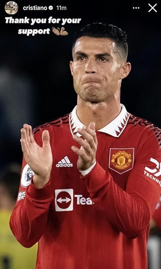 虽然连续替补且赛季至今未破荒,但C罗的心情还不错。比赛结束后,他主动带领队友一起谢场,向随队来到客场的红魔球迷送上感谢。此外,C罗还在社媒发文:“感谢你们的支持。”