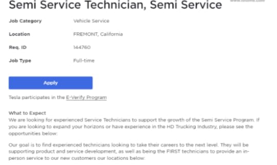近期特斯拉一直在大量招聘相关技术人员,有两大原因,其一,特斯拉正在为Semi电动半挂卡车首批交付工作做准备!