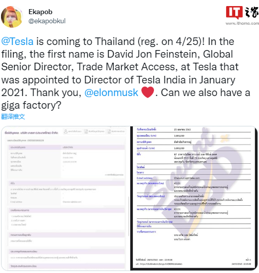 相比其他东南亚市场,泰国的潜力非常大,经济上和环境都相对不错,今年4月份特斯拉已注册了位于曼谷办公大楼的特斯拉(泰国)有限公司,该公司将负责销售皮卡、货车、乘用车和小型汽车等新能源汽车~