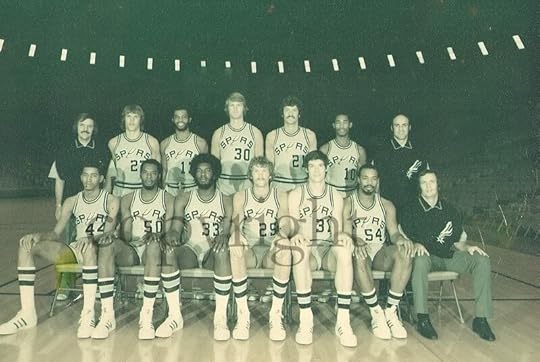 (1973-74赛季,刚刚来到圣安东尼奥的马刺队,前排左一“冰人”格文,后排左三詹姆斯-塞拉斯,前排C位考比-迪特里克)