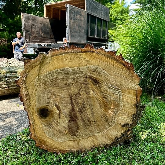 Each lift weighed in somewhere around 3000 pounds according to the crane operator. Having a ton and half of dead weight flying over the house all afternoon was, in a word, unsettling. It absolutely unlocked a brand new variety of homeowner fear. I hate the idea of taking down perfectly healthy trees, but after seeing how big these oaks are once they were on the ground, the thought of any of them landing on the house is nightmare fuel.