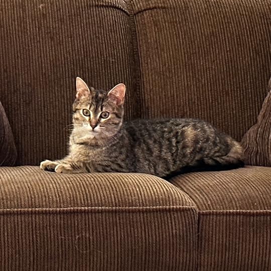 Every morning, beginning Monday of this week, between the time my alarm goes off and I flop over to turn on the lights, a certain gray kitten has taken it upon herself to jump up on the bed and give me a headbutt and demand about 45 seconds of ear scratches before she hops down and goes on about her day. Given the trials and tribulations of the last two months, it ranks well up on the list of best possible ways to start the morning.