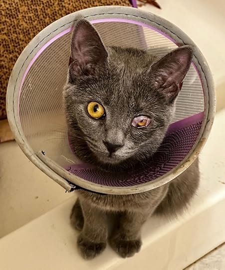 I had a hunch I was getting into something when I decided on this little gray kitten hunkered down in the back of her cage at the shelter, though admittedly this has gotten more involved than I planned for originally. Whatever. Everyone wants an “ideal” kitten. After already spending three months getting passed over, there’s no telling how much longer “the cat with the weird eye” would have lingered there or worse, been returned or dumped somewhere, once they realized the cost and level of effort required to get her fixed up. She’s in no danger of that fate here.