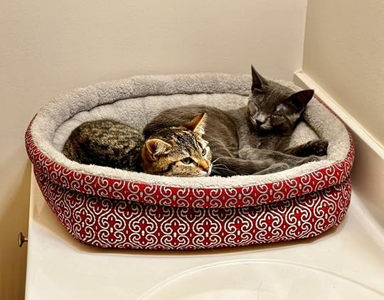 For now, our newcomers are sequestered in the guest bathroom until they decompress and now recover. I’m willing to let that phase of things take as long as it takes. Jorah has been interested and makes regular trips back the hall to investigate all the new smells. So far, though, he has been unfailingly polite with not much undue barking or whining.
