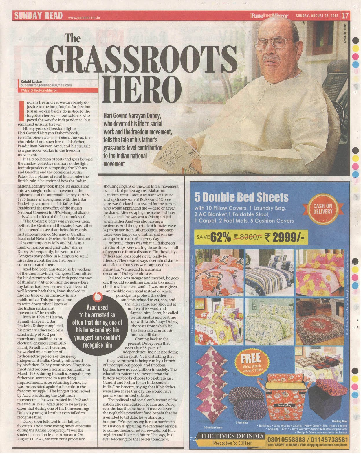 The book tells the story of his father’s life and work in and around the Mainpuri District in the decades leading up to Independence. Dubey is a skilled storyteller and his book is more than just the life of Pandit Ram Narayan Azad. It is a tribute to the many brave men and women who sacrificed everything they had to their vision of an India where every citizen would lead a life of dignity and choice. Their stories have long faded away, and replaced by simplistic icons such as ‘Mahatma Gandhi’ and ‘Chacha Nehru’. They give charming personal views into life in an Indian village and involvement in various aspects of India’s freedom struggle.