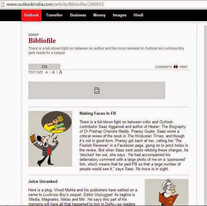 Does anyone know who Saaz Aggarwal is? Well, let me tell you: She's a Pune-based writer who "reviewed" my biography, Healer: Dr Prathap Chandra Reddy and the Transformation of India (Penguin) for Hindustan Times. In my opinion, I wonder if she actually read the 600-page book. For example, she says I did not deal with health insurance! Whaaa? There's an entire chapter on health insurance. And so on. Ordinarily, I ignore foolish reviewers on the grounds that they are, well, foolish, and that they have some sort of agenda. But this so-called review is egregiously misinformed. It misrepresents my book. The next time that Manjula Narayan, books editor of Hindustan Times, makes assignments, she should at least insist that reviewers read a book before "reviewing" it.My ‘review’ of this book actually appeared in Hindustan Times on 5 April 2014, and if you like you can read it here: http://www.hindustantimes.com/books/booksreviews/book-review-healer-a-biography-of-dr-prathap-c-reddy/article1-1204417.aspx